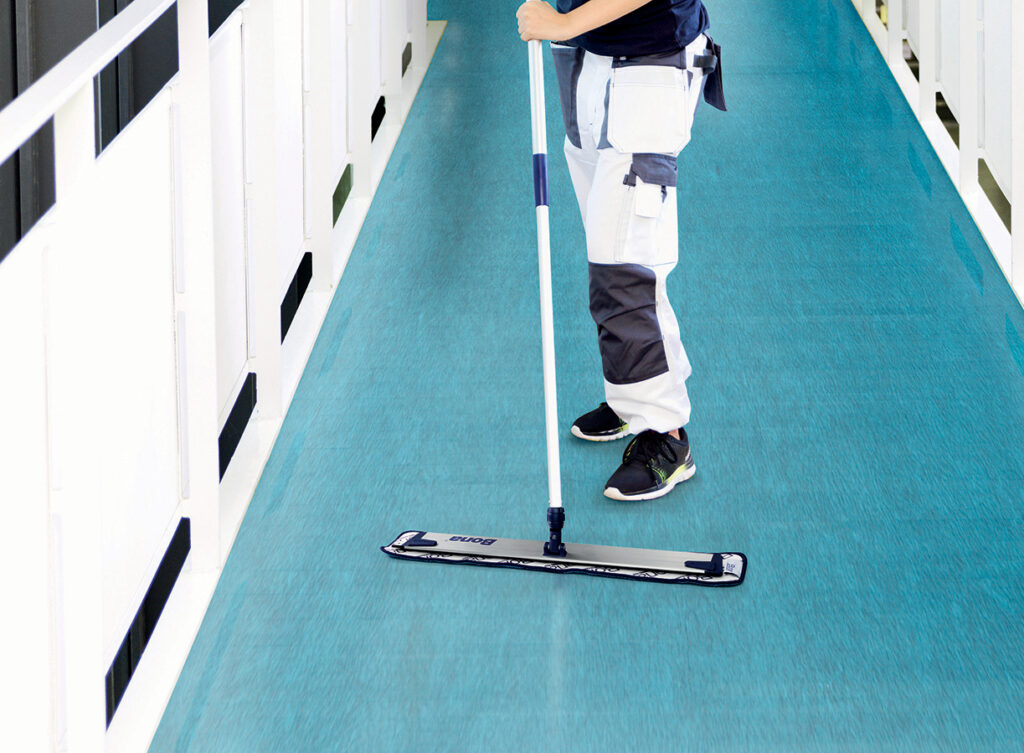 Un programma che si basa sulla manutenzione regolare e costante delle pavimentazioni resilienti è la chiave di una superficie sana e duratura: da operazioni di pulizia quotidiana a quelle di protezione che garantiscono in ogni caso una maggiore protezione all’usura e sicurezza igienica.