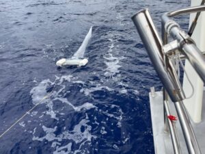 La parte più importante della spedizione resta quella scientifica: a bordo è stata installata Manta, un’attrezzatura sviluppata da Oceaneye per il monitoraggio della plastica in mare. I primi due campioni sono già stati raccolti, seguendo nuovi protocolli di ricerca. Il primo al largo di Nuku Hiva, il secondo poco dopo la partenza verso le Hawaii. Ogni dato raccolto contribuirà a una migliore comprensione della dispersione delle microplastiche negli oceani.
